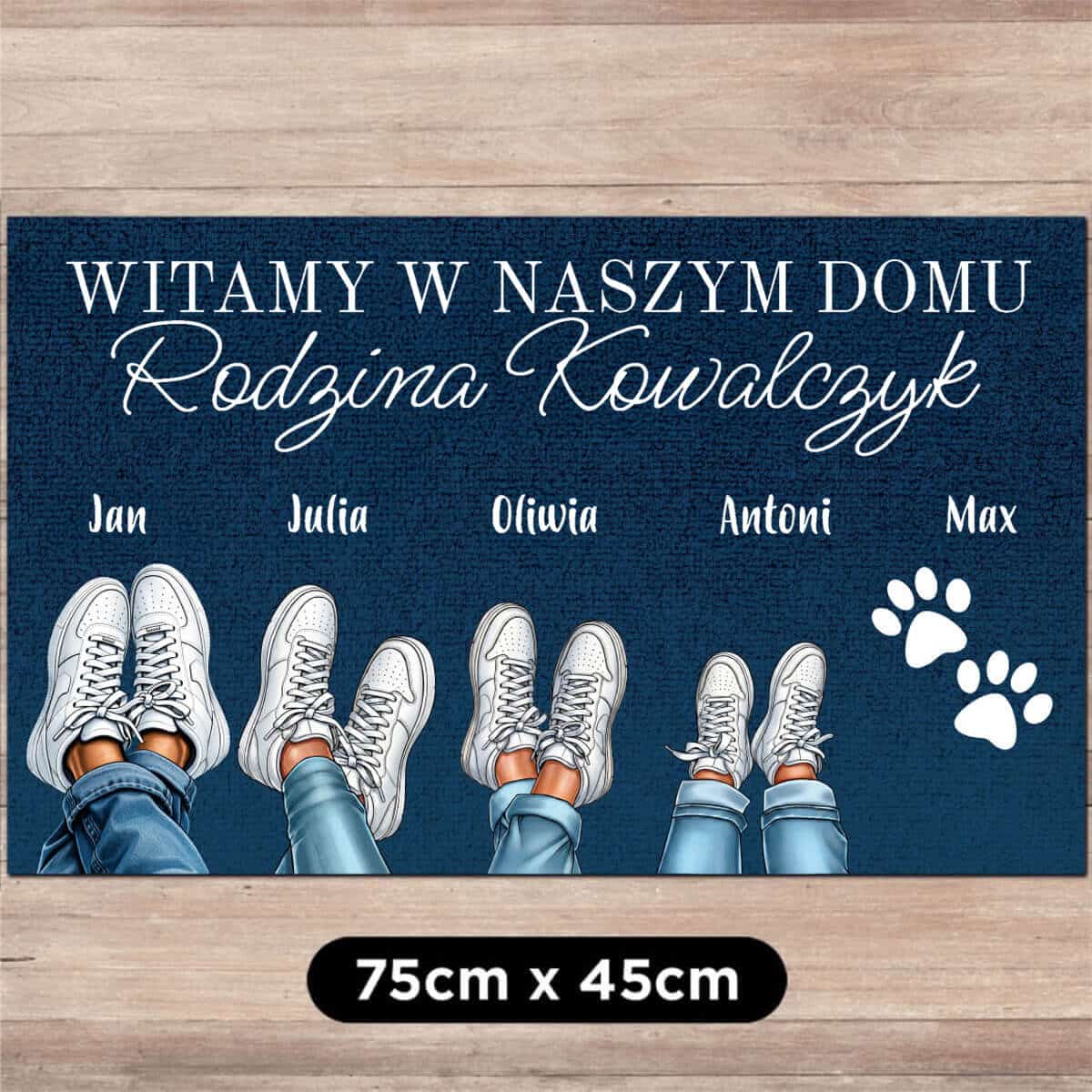 Personalizowana wycieraczka „Rodzinne sneakersy” to oryginalny dodatek do Twojego domu. Każda para odpowiada jednemu domownikowi.